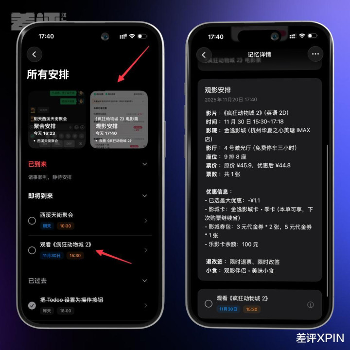 你只要在购票时按一下按钮,Todoo 就能把“哪个电影院、哪个厅、什么时间”全部识别出来,自动生成一个观影日程。