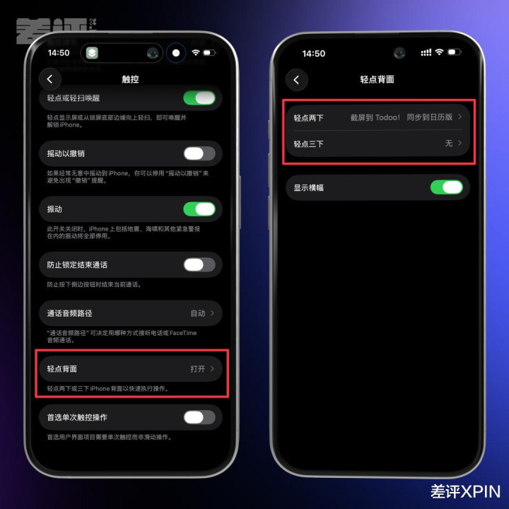 Todoo 的核心触发机制其实是那个快捷指令。你完全可以利用 iOS 的辅助功能,在设置-辅助功能-触控-轻点背部,把“轻点背面两下/三下”设置为触发这个指令。