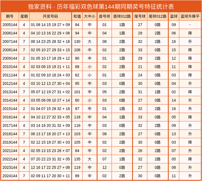 和值:去年同期和值开出89,形态呈现为中数。对历史同期中的和值大中小形态进行统计,我们发现:中数开出14次、小数开出3次、大数开出2次。本期更看好【中数】和值开出,参考和值在92左右。
